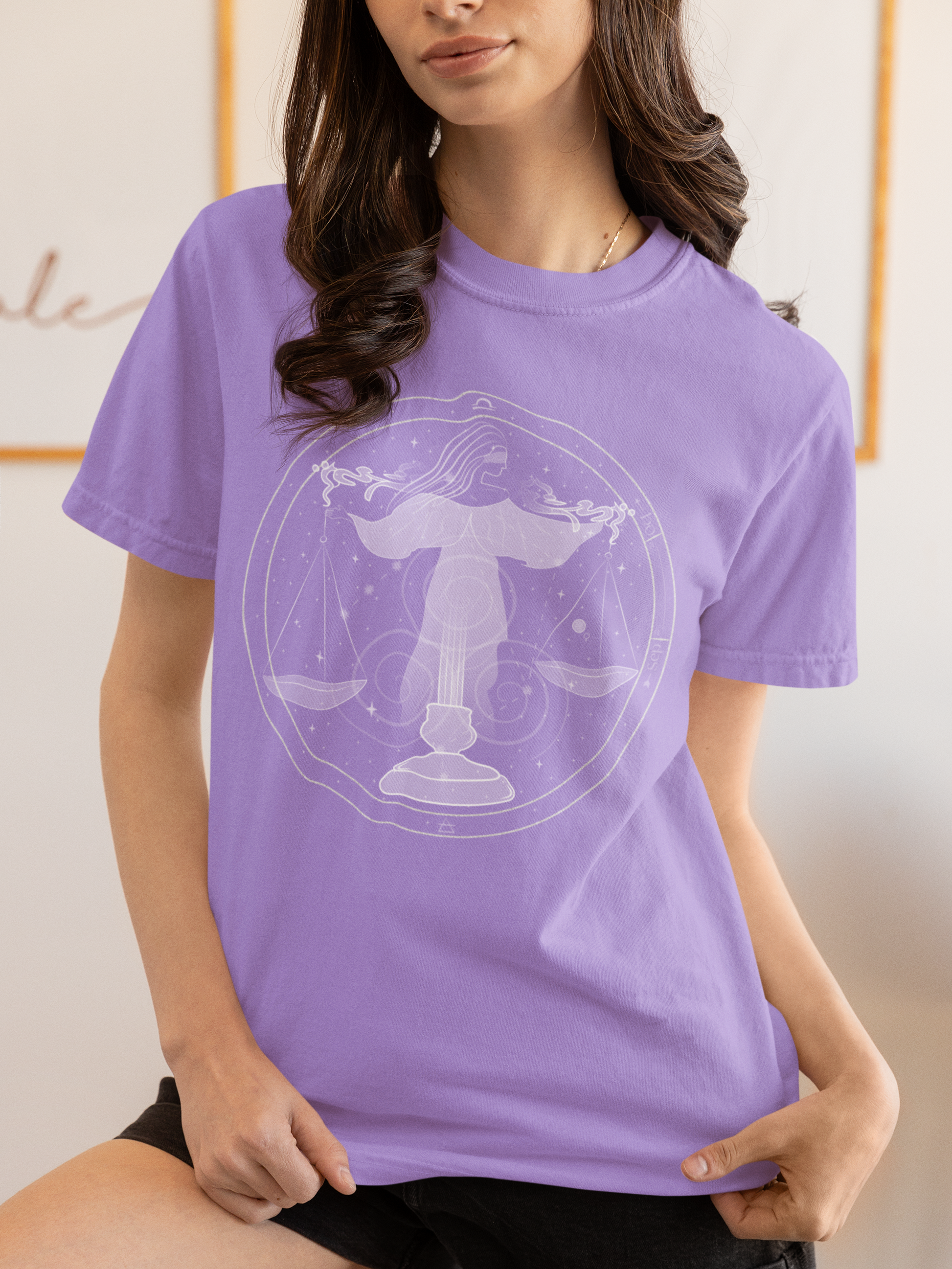 The Libra Astrology T-shirt is for all Libras and anyone looking to balance their energy and walk with grace. A spiritual gift for every fall child seeking a calm and even harmony with the world